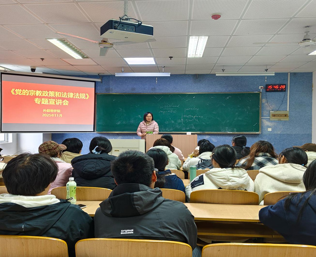 宣讲会上,围绕我国宗教工作的基本方针、相关法律法规以及校园管理规定,结合具体案例,李老师系统解读了宗教信仰自由的政策内涵与法律边界,强调作为新时代大学生,应自觉遵守国家法律法规和校纪校规,坚定理想信念,提高辨别能力,坚决抵制非法宗教活动和校园传教行为。